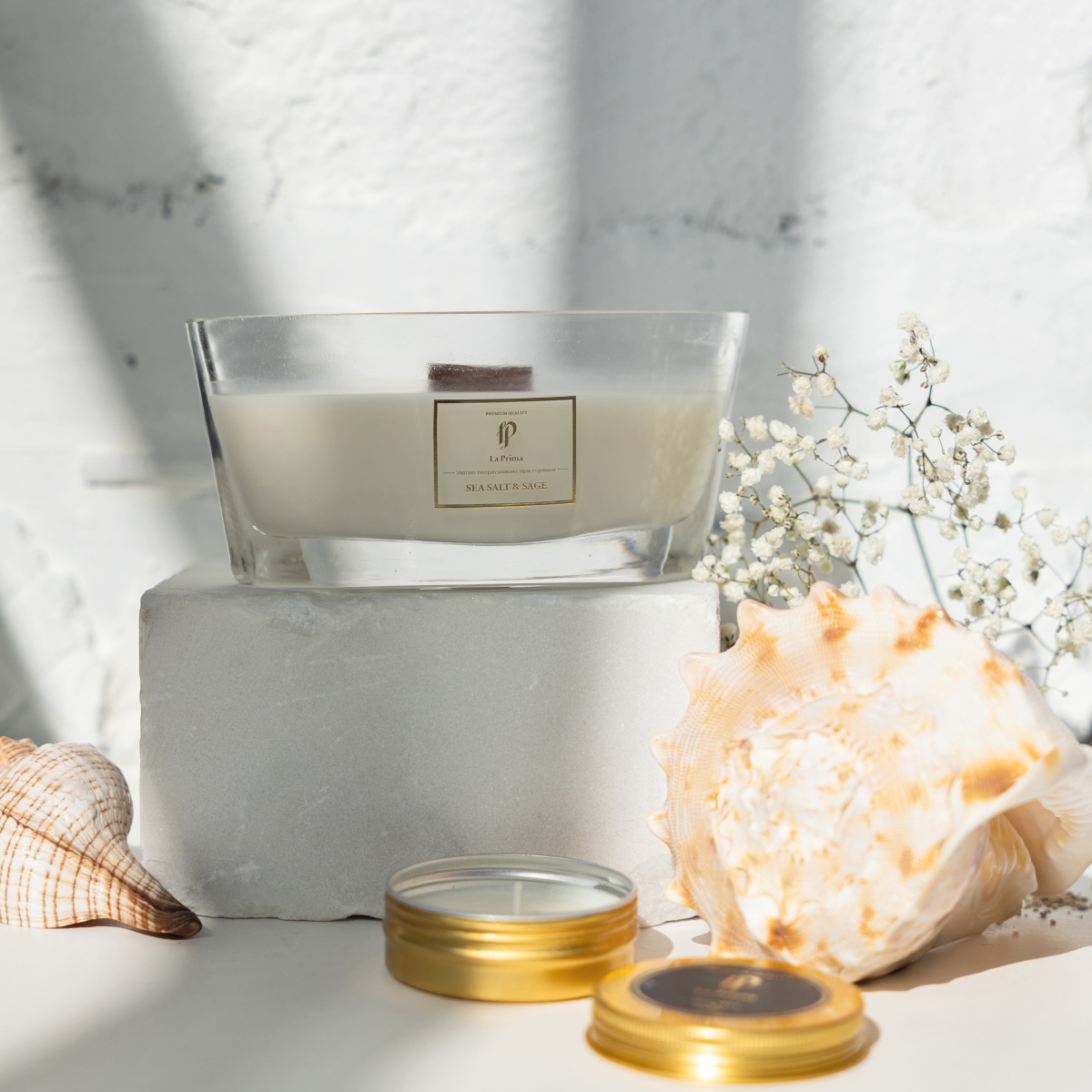«Sea salt & sage» (Морская соль и шалфей) Аромат - Морской воздух смешивается с запахами соли, песка, гальки и морских коряг, образуя естественный, свежий и сложный аромат, сочетающий в себе ноты дерева и моря, воплощающий собой свободу и дух природы