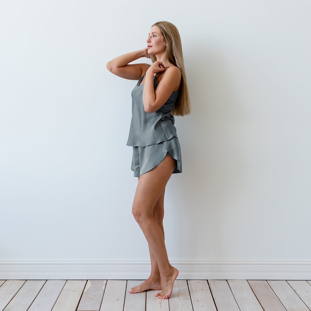 Пижама с шортами выполнена из природного 100% эвкалиптового волокна Tencel.  Это домашний костюм, который подчеркнет вашу красоту!