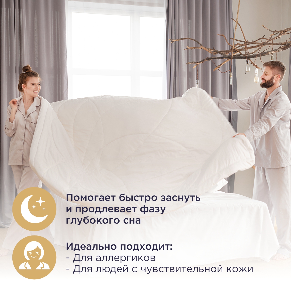 - Всесезонное комфортное использование – натуральные материалы обеспечивают великолепную циркуляцию воздуха, одеяло отлично дышит и обладает великолепным теплообменом