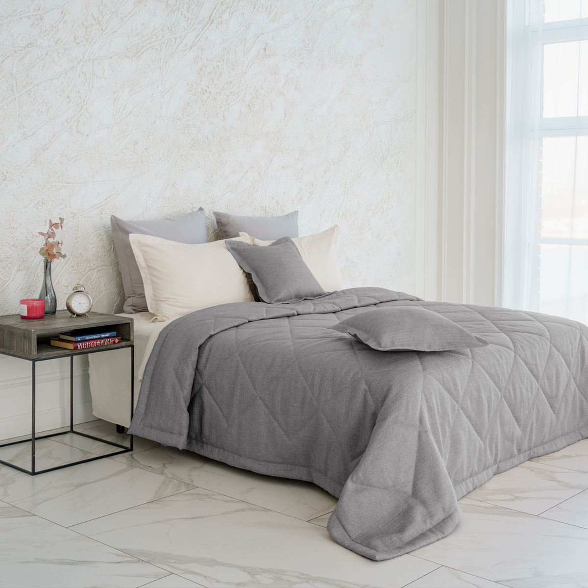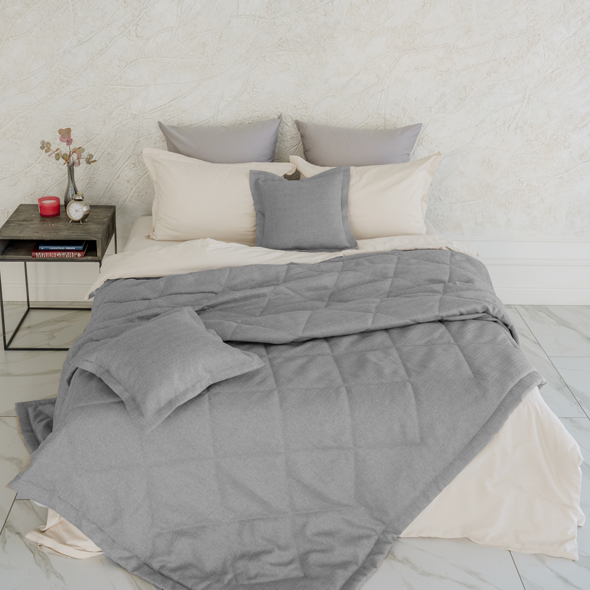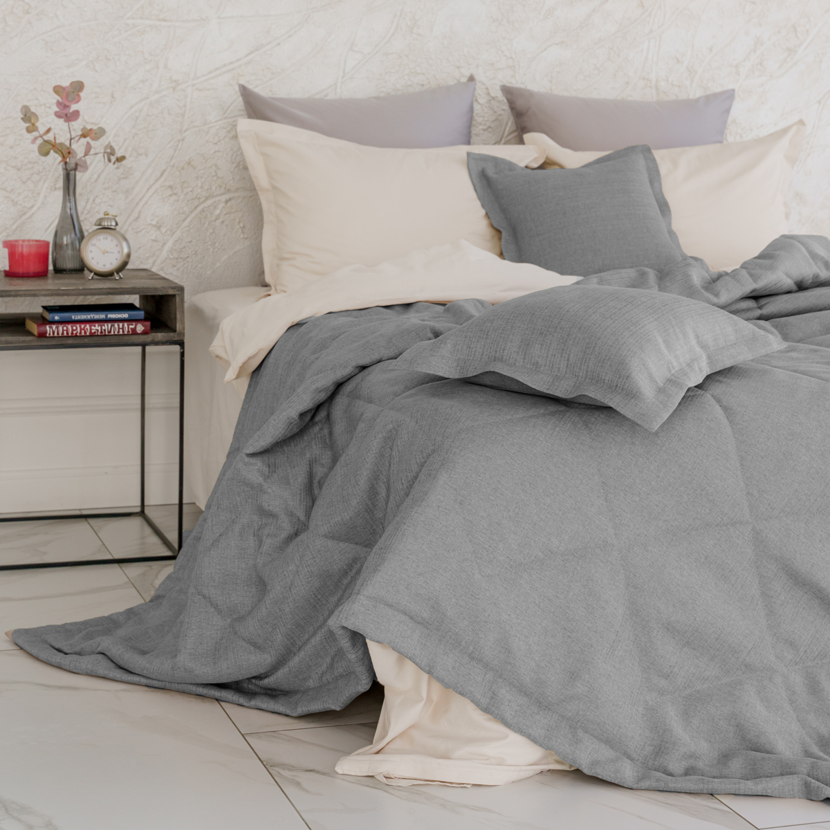 Практичность и функциональность лежит в основе данной коллекции. Изысканная и простая красота раскрывается в универсальных и базовых расцветках однотонных покрывал. Фактурная меланжевая поверхность органично подчеркнет индивидуальность интерьера, выделив в нем только самое важное.