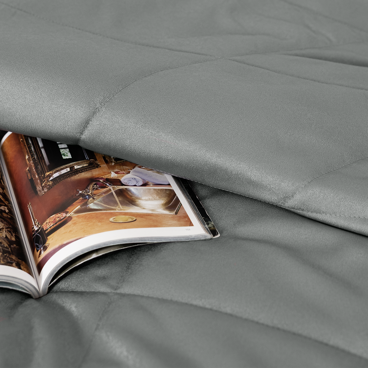 Подклад: микрофибра велюр, за счет своей фактуры он предотвращает скольжение покрывала на кровати