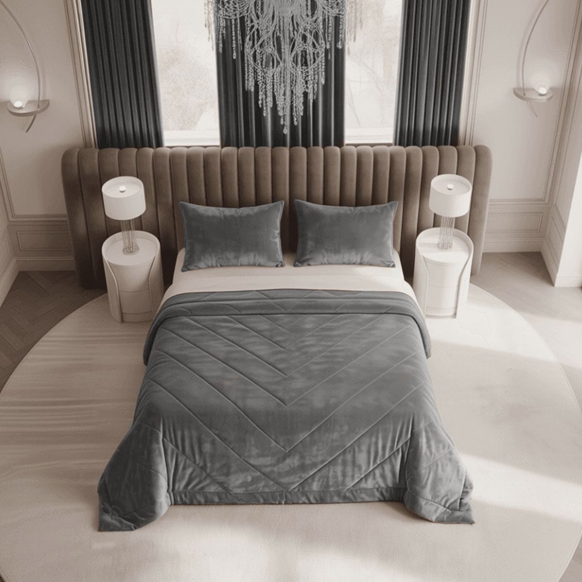 Покрывало создаёт атмосферу спокойной уверенности и выглядит дорого без лишней пафосности.