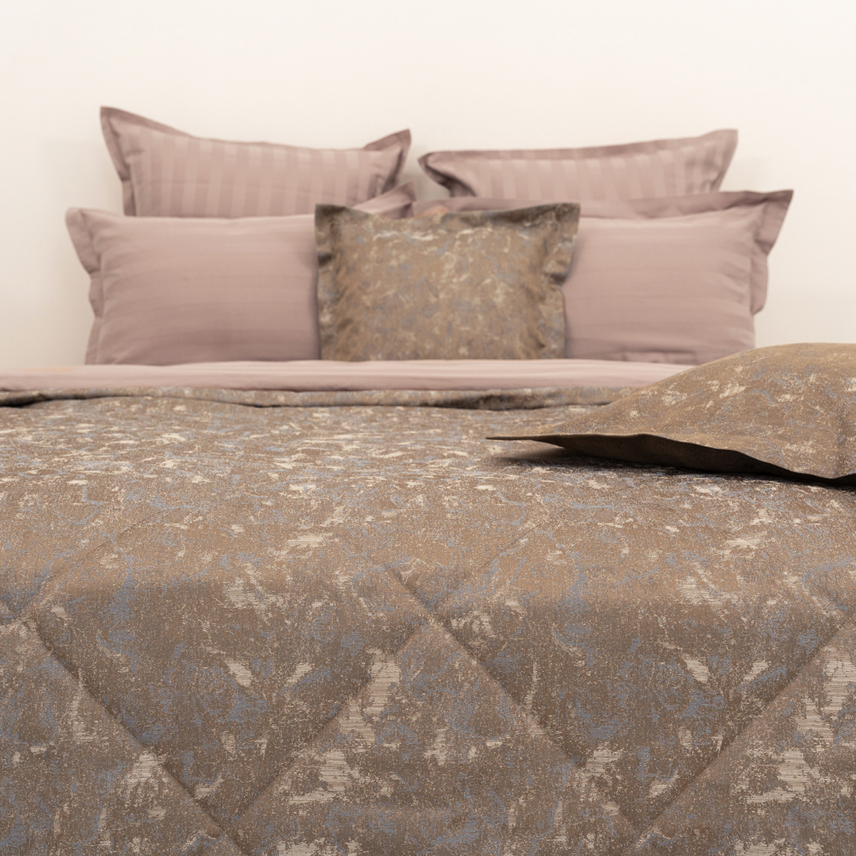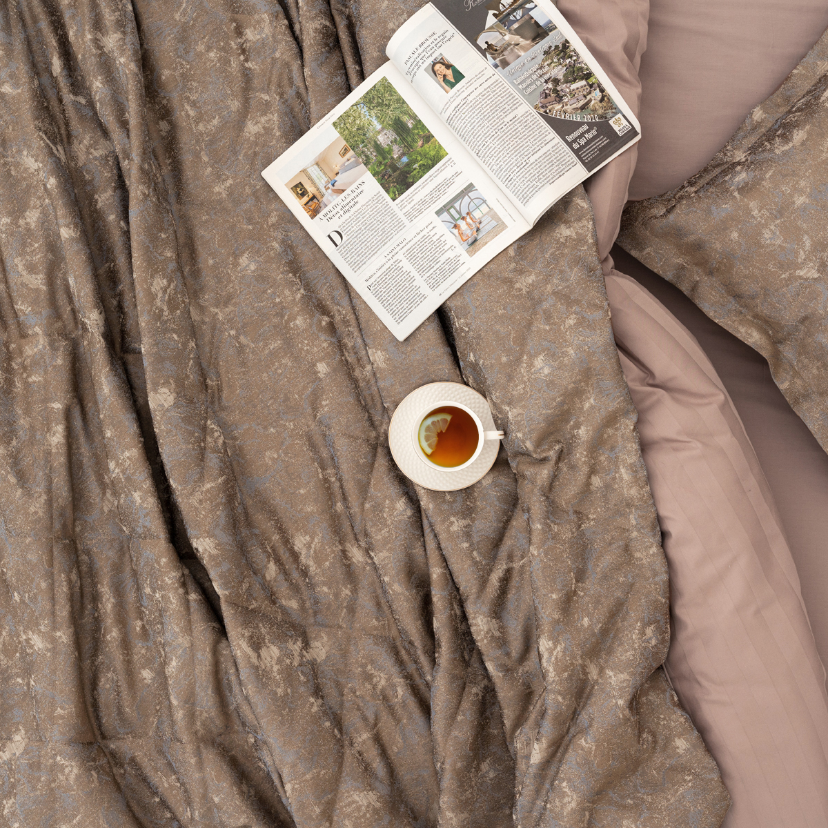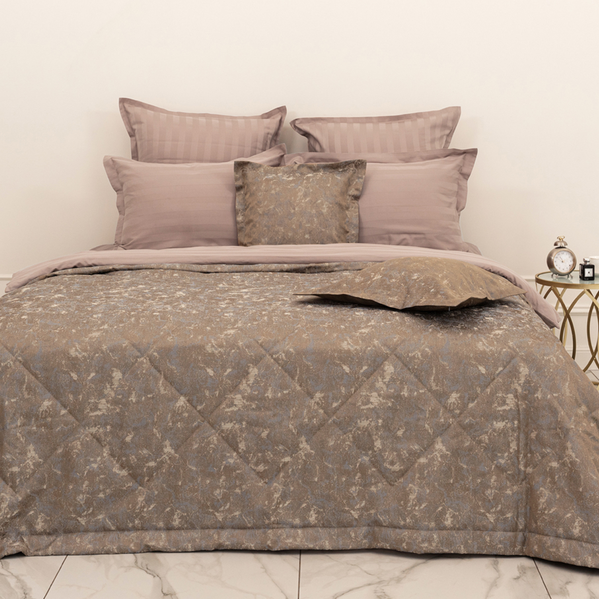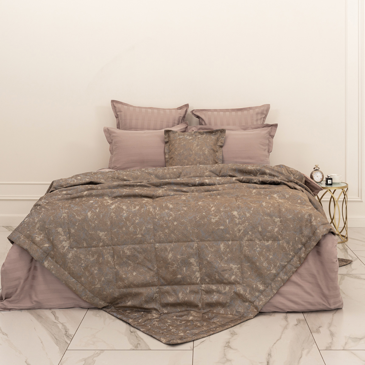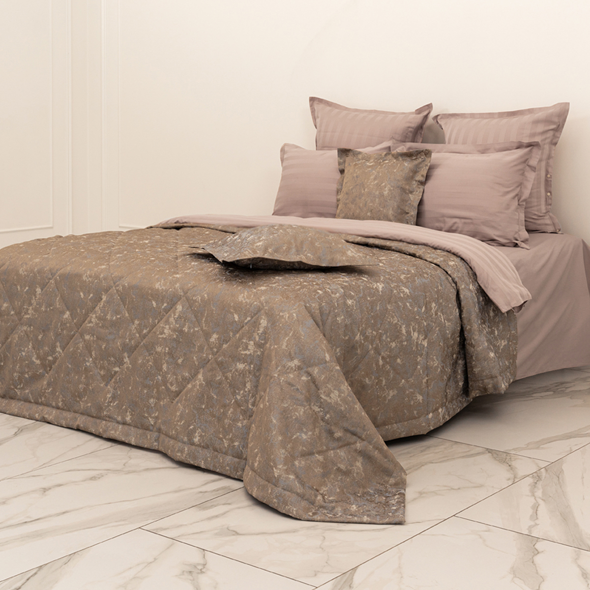 Покрывало Glori - современный стильный дизайн, с ноткой индивидуальности и завораживающей глубины. Она придаст пространству спальни особый шарм. Смотрится изысканно и элегантно, сочетает в себе изящный жаккардовый блеск, благородные цвета и фактуру.