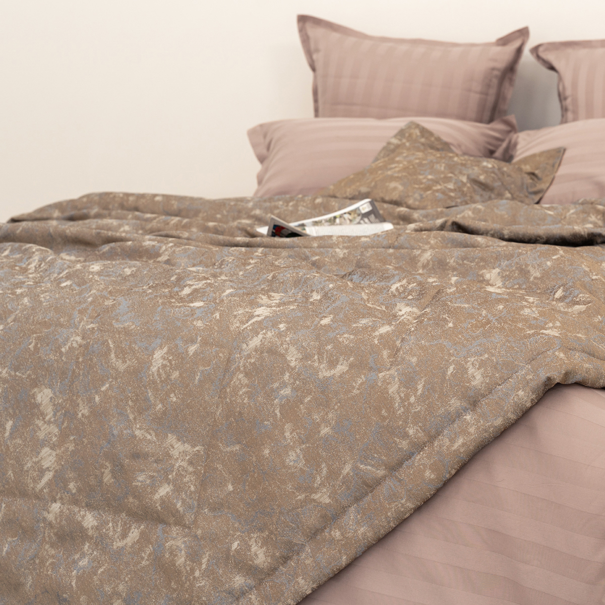 Состав: ткань портьерная жаккард 100% пэ, наполнитель - полиэфирное волокно. Стежка в виде ромбов. Подклад покрывала – микрофибра велюр, за счет своей фактуры он предотвращает скольжение покрывала на кровати.