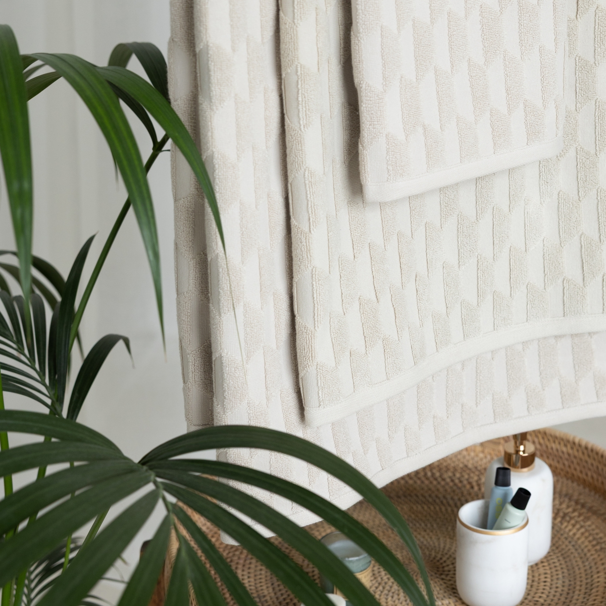 Махровые полотенца Diamond - это не просто полотенца, это воплощение элегантности и комфорта. Вдохновленные сиянием ограненных бриллиантов, мы создали коллекцию с узором в виде геометричной выстрижки, которая напоминает алмазную огранку, создает игру света и тени, превращая обычное полотенце в предмет интерьерного искусства.