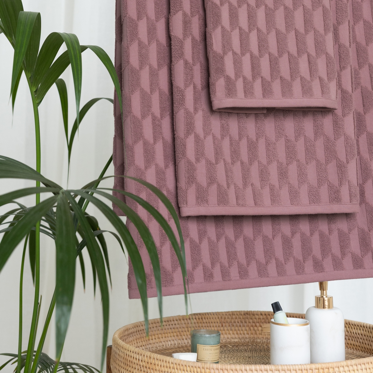 Махровые полотенца Diamond - это не просто полотенца, это воплощение элегантности и комфорта. Вдохновленные сиянием ограненных бриллиантов, мы создали коллекцию с узором в виде геометричной выстрижки, которая напоминает алмазную огранку, создает игру света и тени, превращая обычное полотенце в предмет интерьерного искусства.