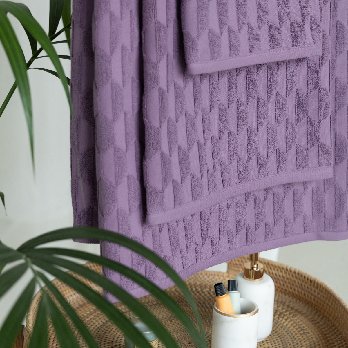 Махровые полотенца Diamond - это не просто полотенца, это воплощение элегантности и комфорта. Вдохновленные сиянием ограненных бриллиантов, мы создали коллекцию с узором в виде геометричной выстрижки, которая напоминает алмазную огранку, создает игру света и тени, превращая обычное полотенце в предмет интерьерного искусства.