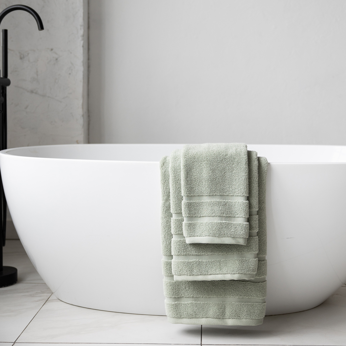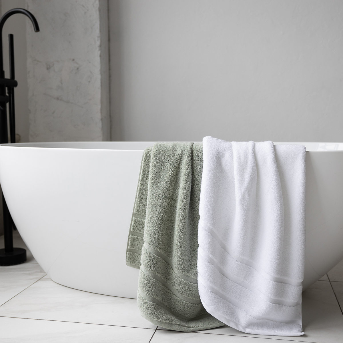 Махровые изделия Urban, выполненные в единой цветовой гамме, составляют великолепный ансамбль с постельным бельем из коллекции La Prima "Формула комфорта", создавая гармонично оформленное и уютное пространство.