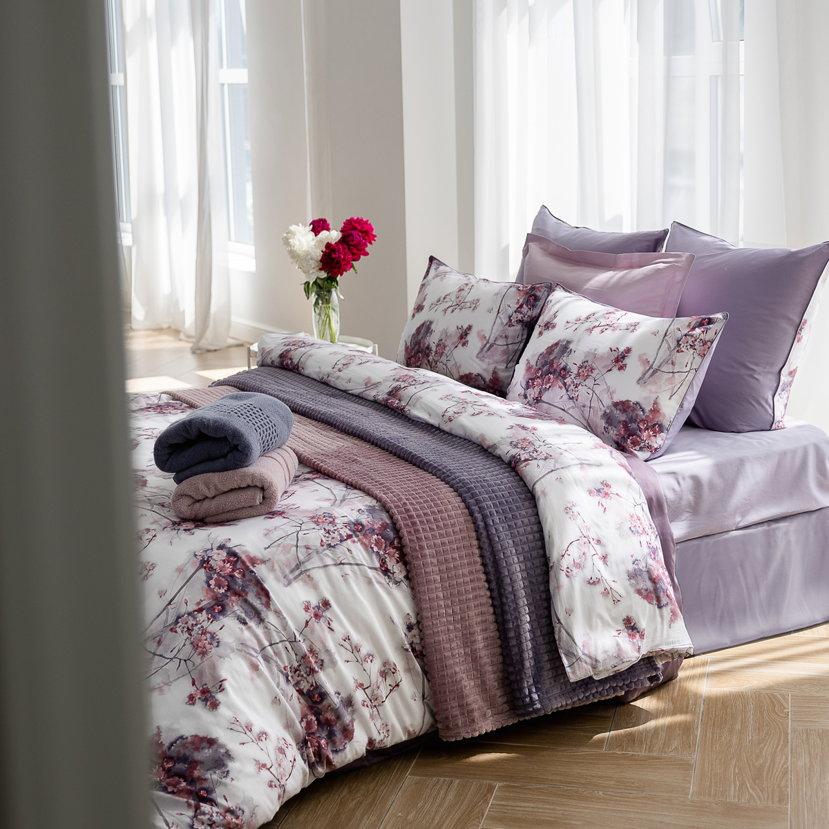 В ткани мако-сатин, из которой произведена коллекция, используется более тонкая 60-я нить. Плотность ткани 300 ТС. За счет специальной скрутки нити, ткань получается очень мягкая и приятная на ощупь.