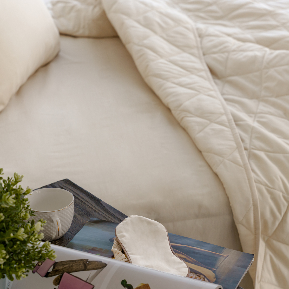 - Стеганое легкое одеяло (плотность 100 г/м2) - 220х240см, подойдёт для всесезонного использования.