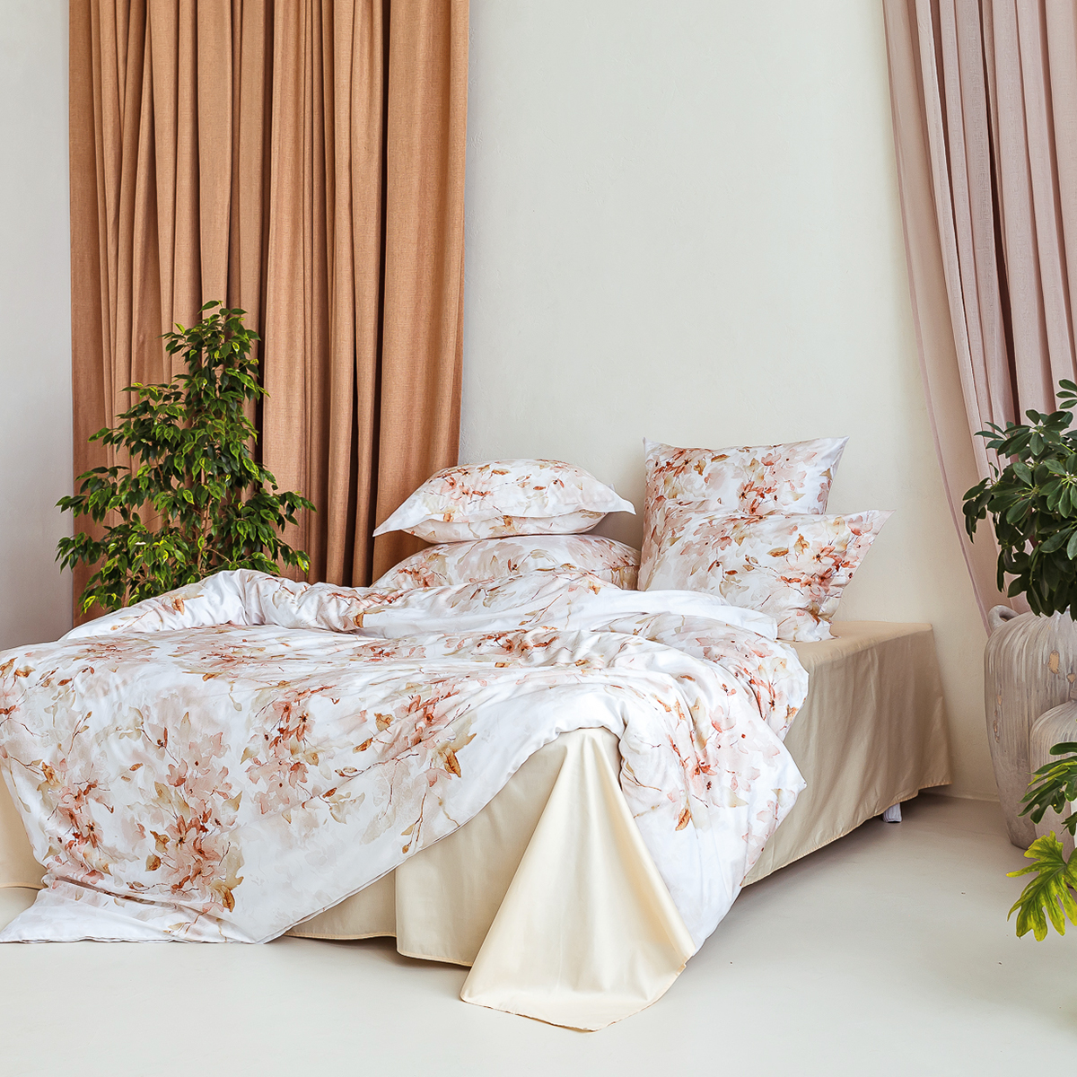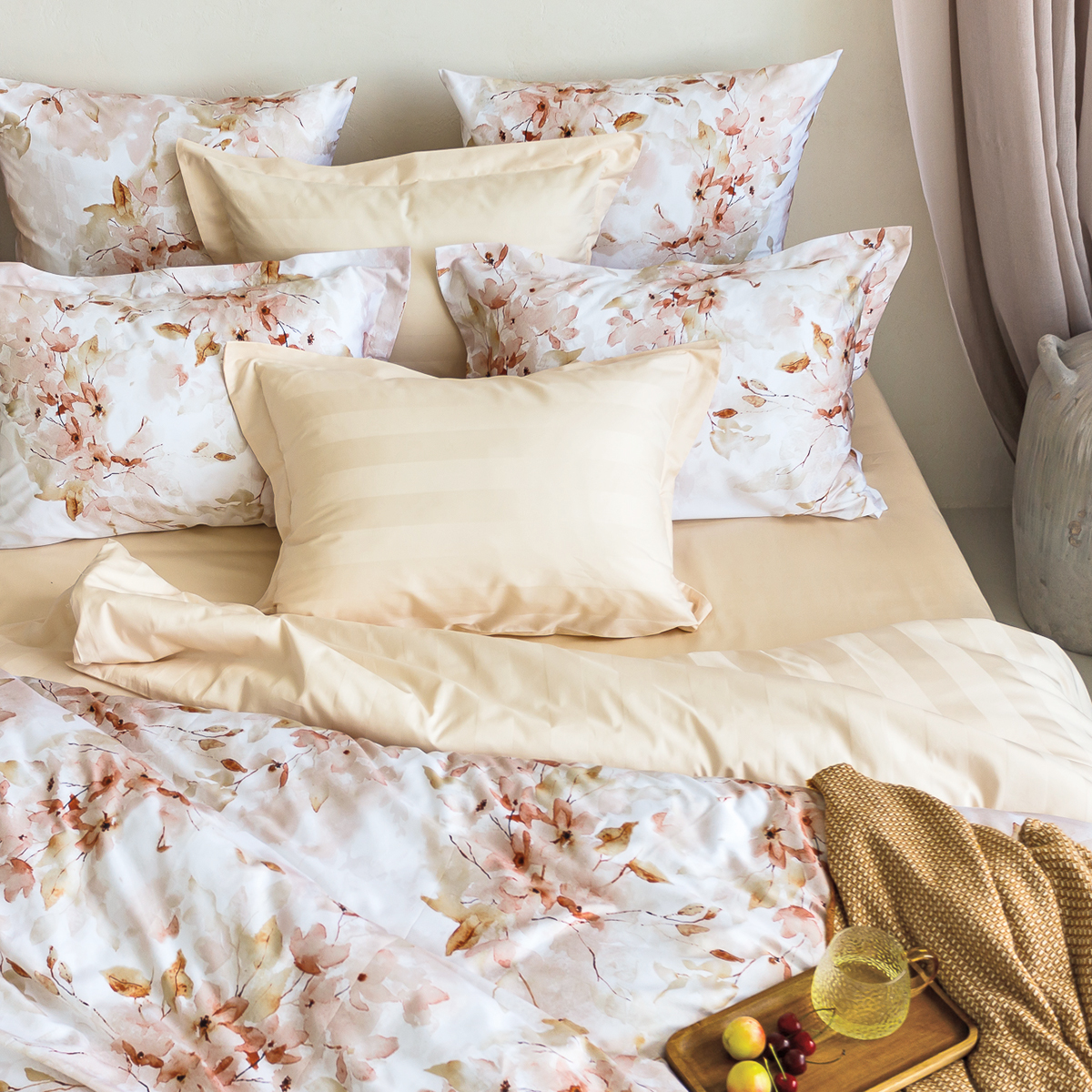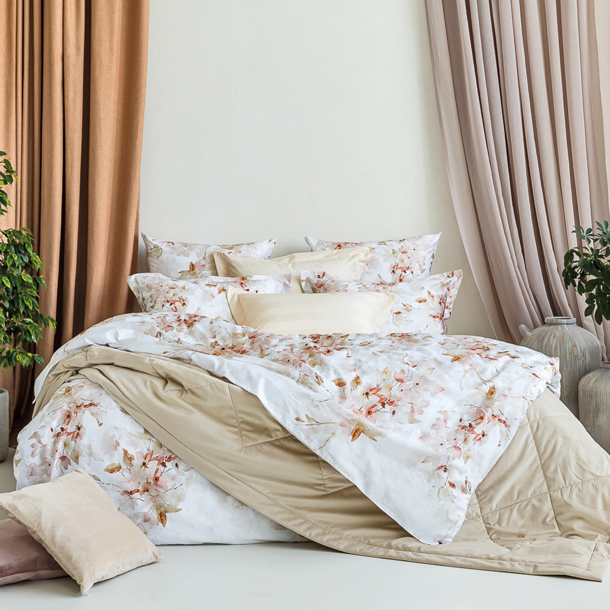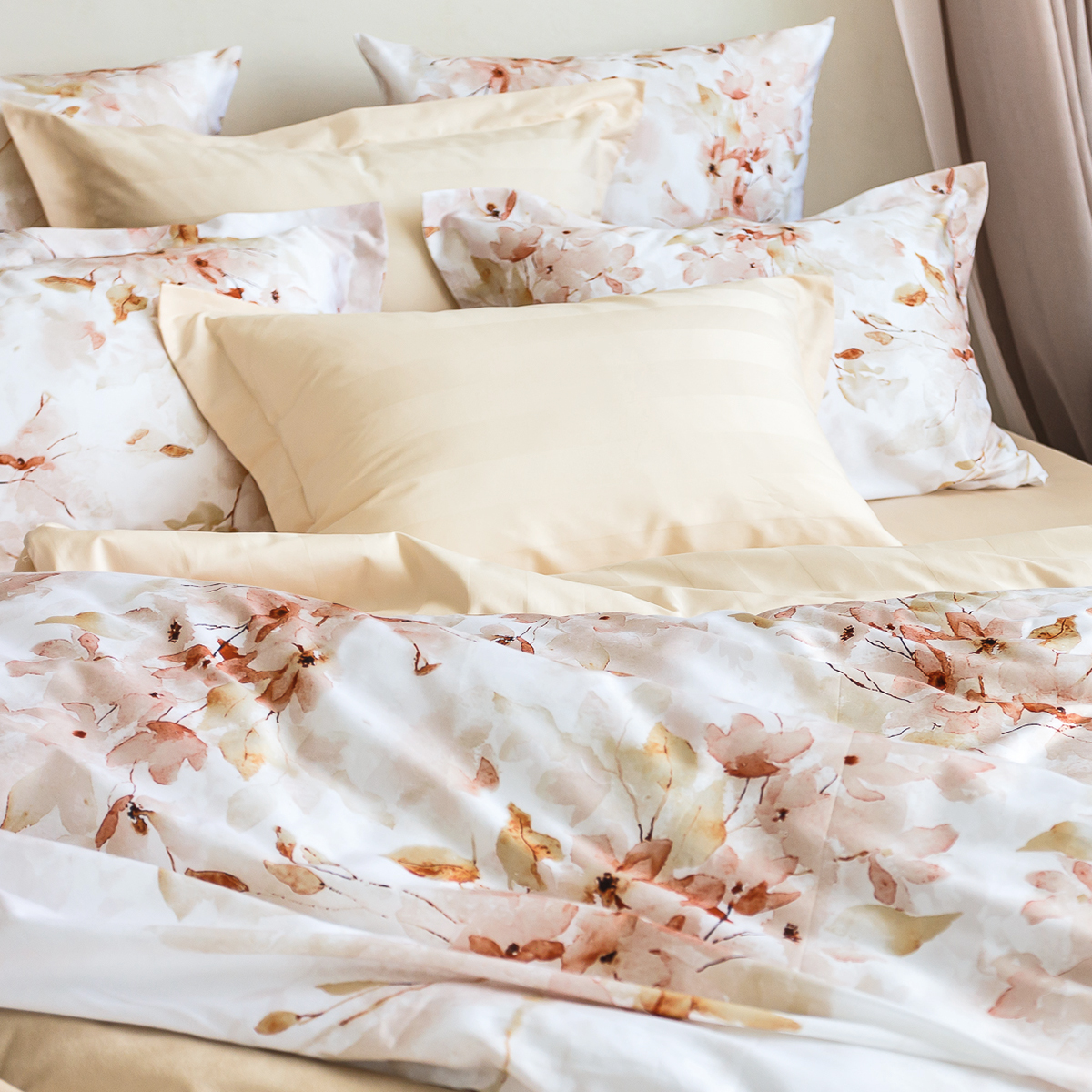В ткани мако-сатин, из которой произведена коллекция, используется более тонкая 60-я нитьПлотность ткани 300 ТС. За счет специальной скрутки нити, ткань получается очень мягкая и приятная на ощупь.