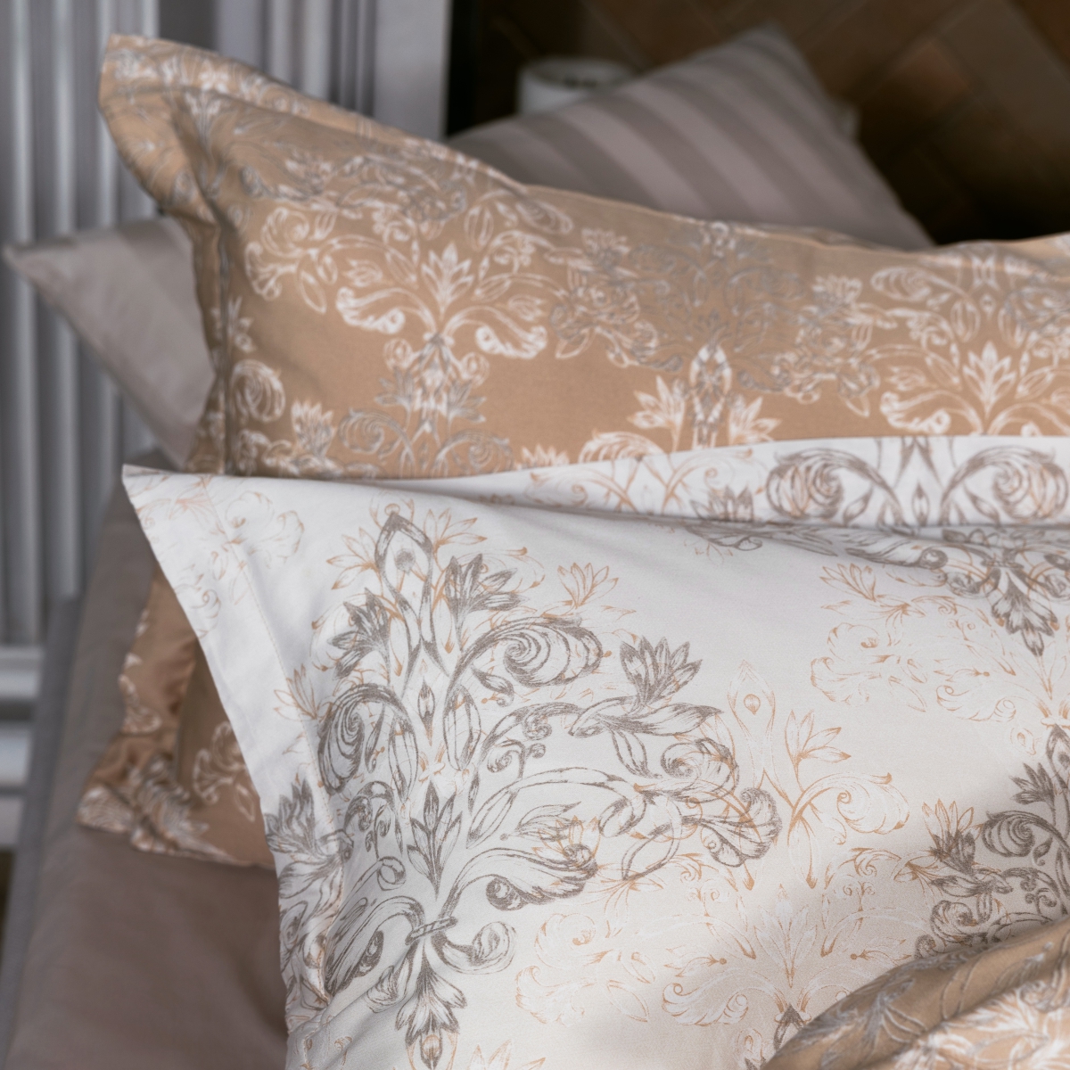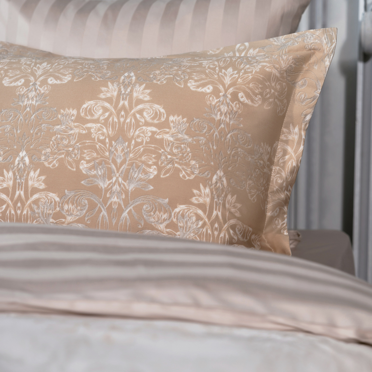 Роскошный комплект постельного белья Маргарет из люкс-сатина - благородная классика в мягких универсальных бежево-молочных оттенках. Роскошный дамасский узор притягивает внимание и добавляет изысканности в интерьер.