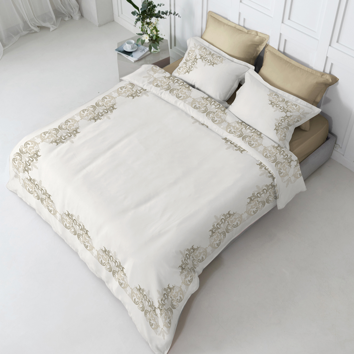 Каждый комплект коллекции — это роскошный 100% египетский хлопок высшего сорта, который является самым экологически чистым в мире. В ткани мако-сатин, из которой произведена коллекция, используется более тонкая 60-я нить. Плотность ткани 300 ТС. За счет специальной скрутки нити, ткань получается очень мягкая и приятная на ощупь.
