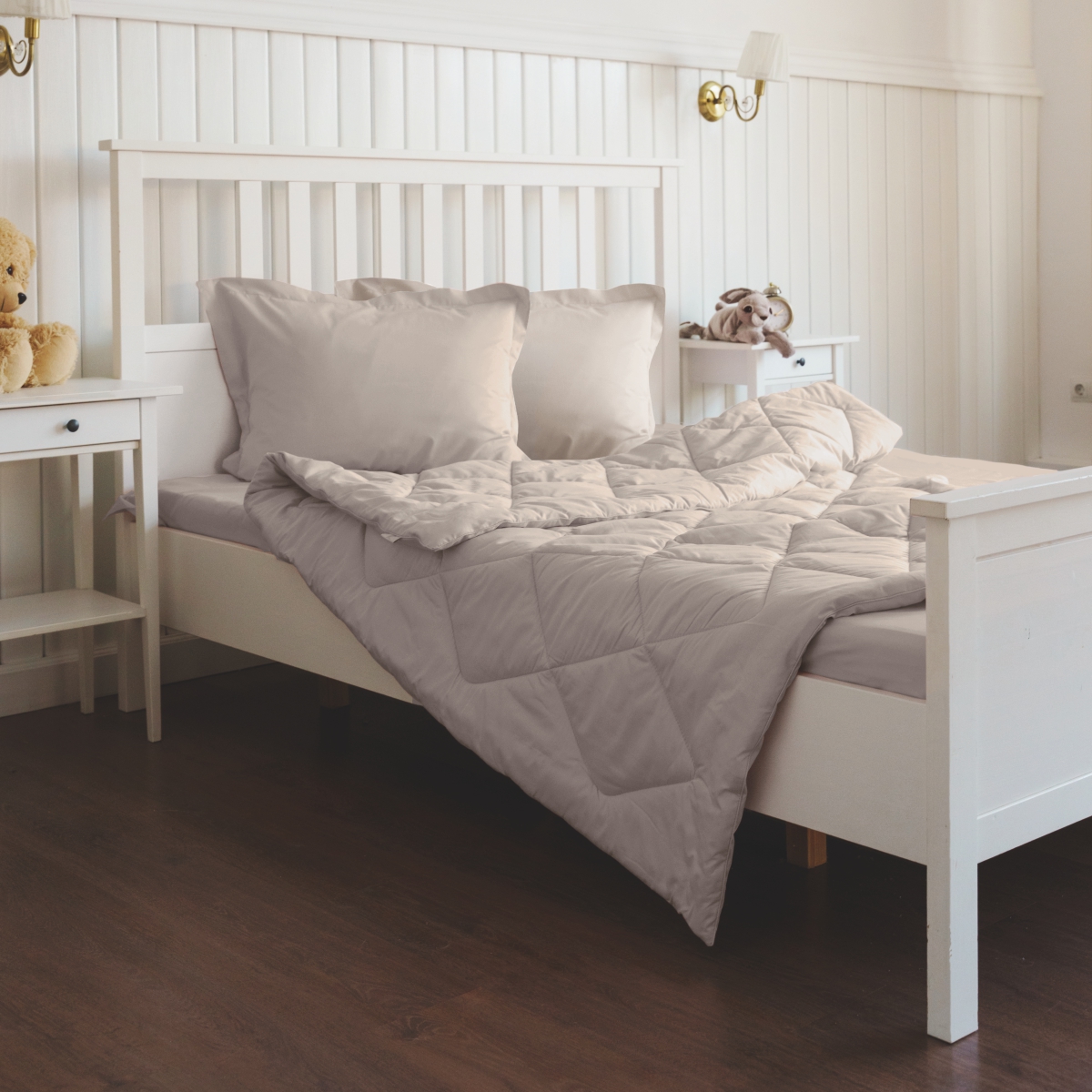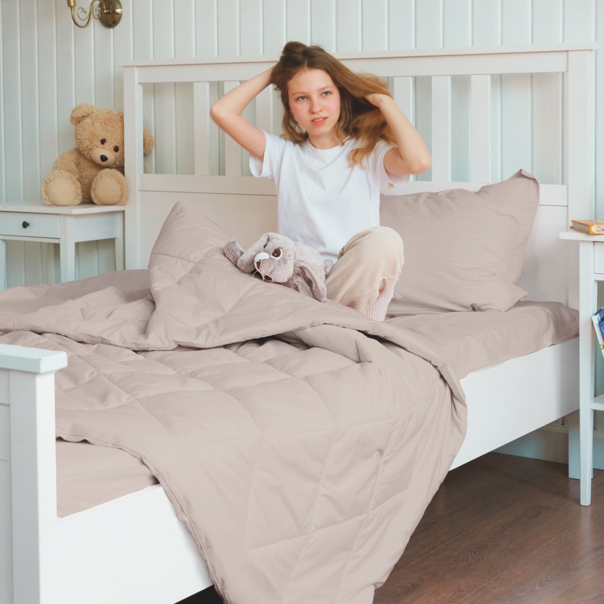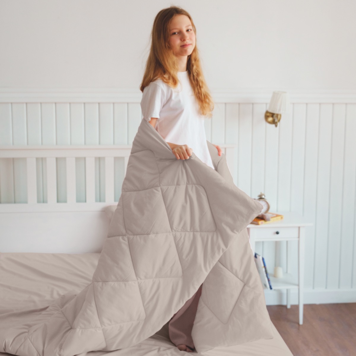 За постельным бельем с одеялом легко ухаживать, его можно стирать в стиральной машине, оно выдерживает до 500 стирок.