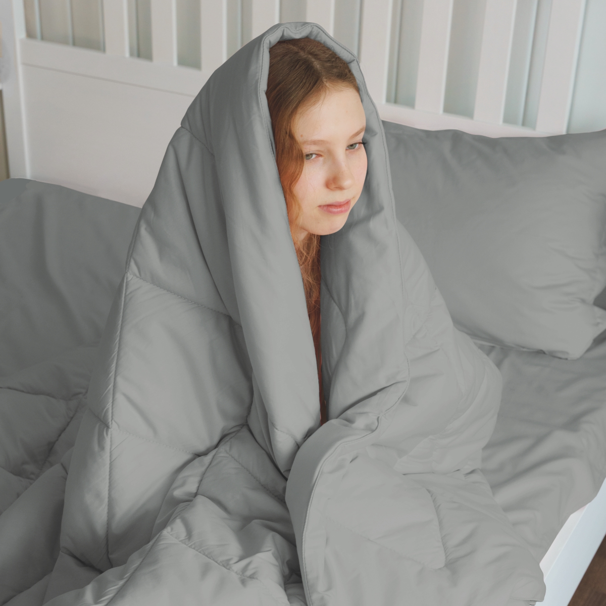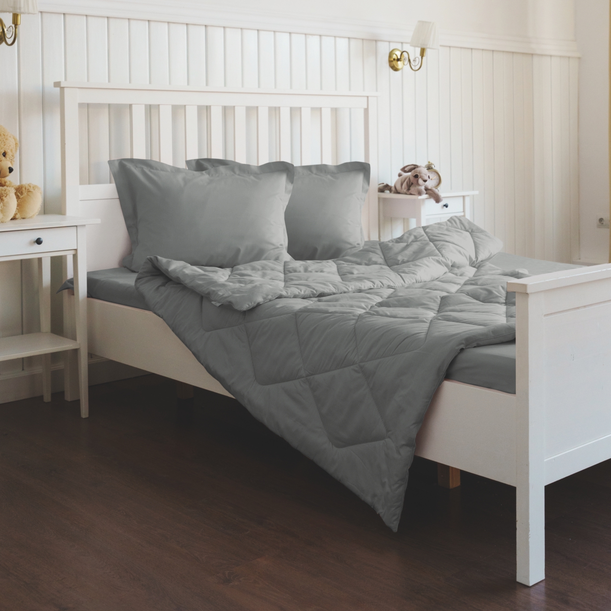ПОСТЕЛЬНОЕ БЕЛЬЁ САТИН С ОДЕЯЛОМ 2 НАВОЛОЧКИ ДЫМЧАТЫЙ