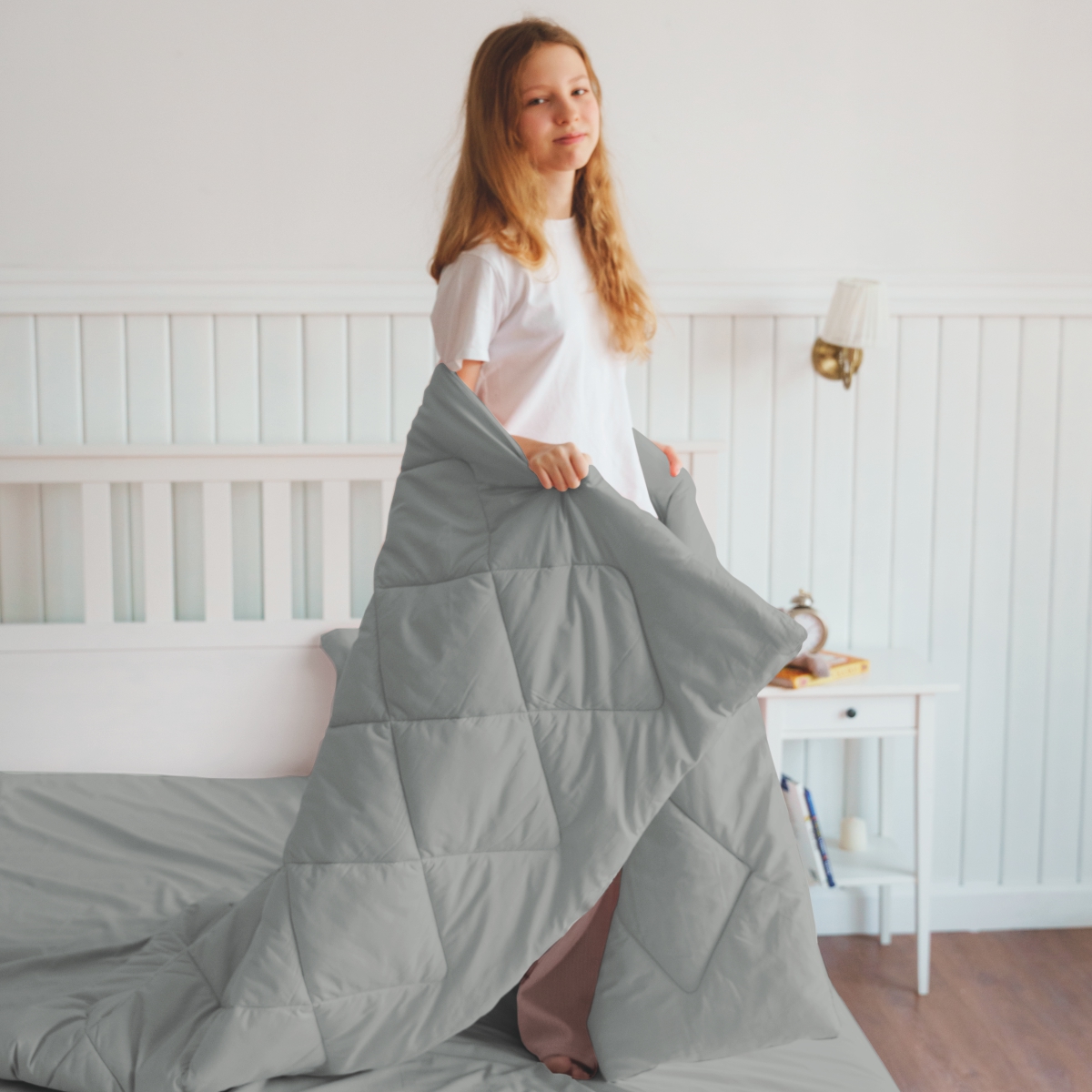 Постельное белье 1.5 спальное - стильный комплект с мягким и воздушным одеялом из высококачественного сатина и 2 наволочками в комплекте. Идеально подойдет как для подростков и детей, так и для взрослых.