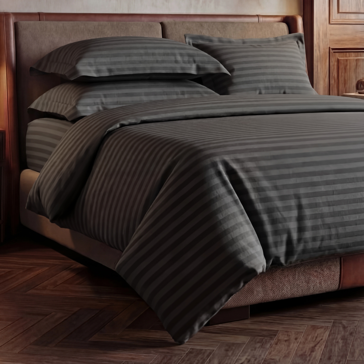ПОСТЕЛЬНОЕ БЕЛЬЁ СТРАЙП-САТИН ТЕМНО-СЕРЫЙ