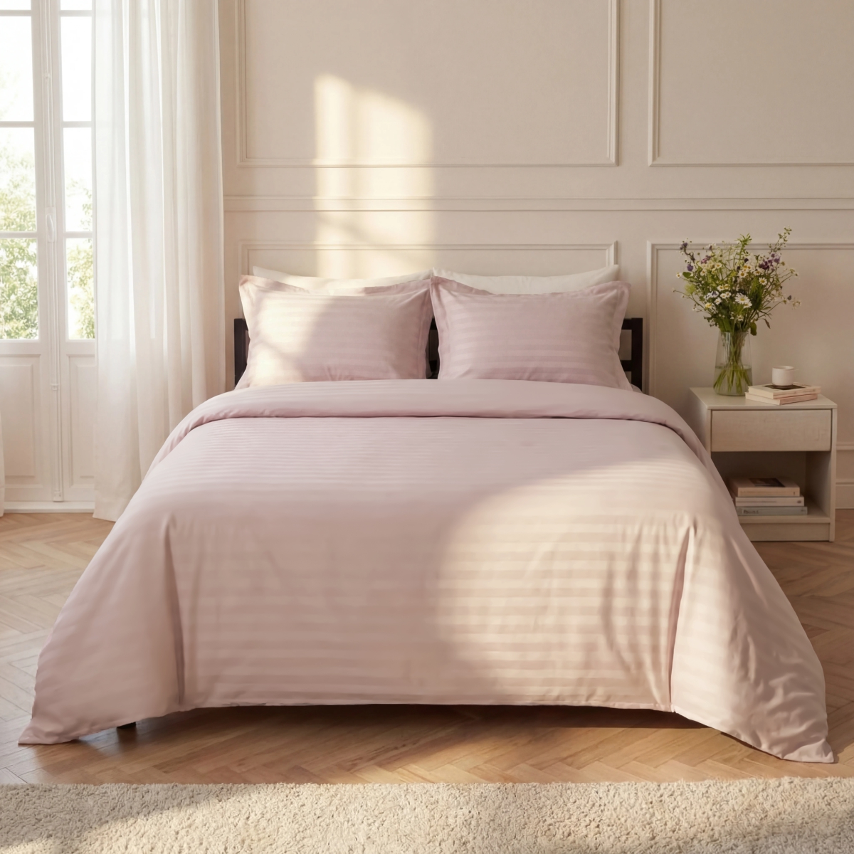 ПОСТЕЛЬНОЕ БЕЛЬЁ СТРАЙП-САТИН ПУДРА