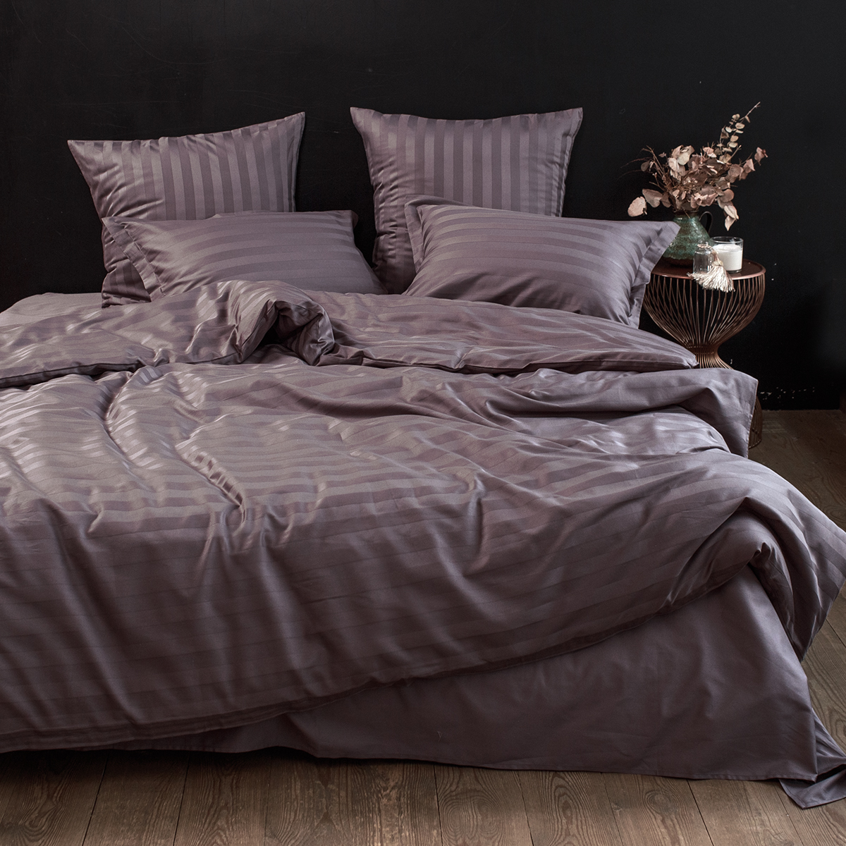 Однотонный стильный пододеяльник произведен из ткани страйп-сатин – 100% хлопок с жаккардовым рисунком в виде полос 3х3