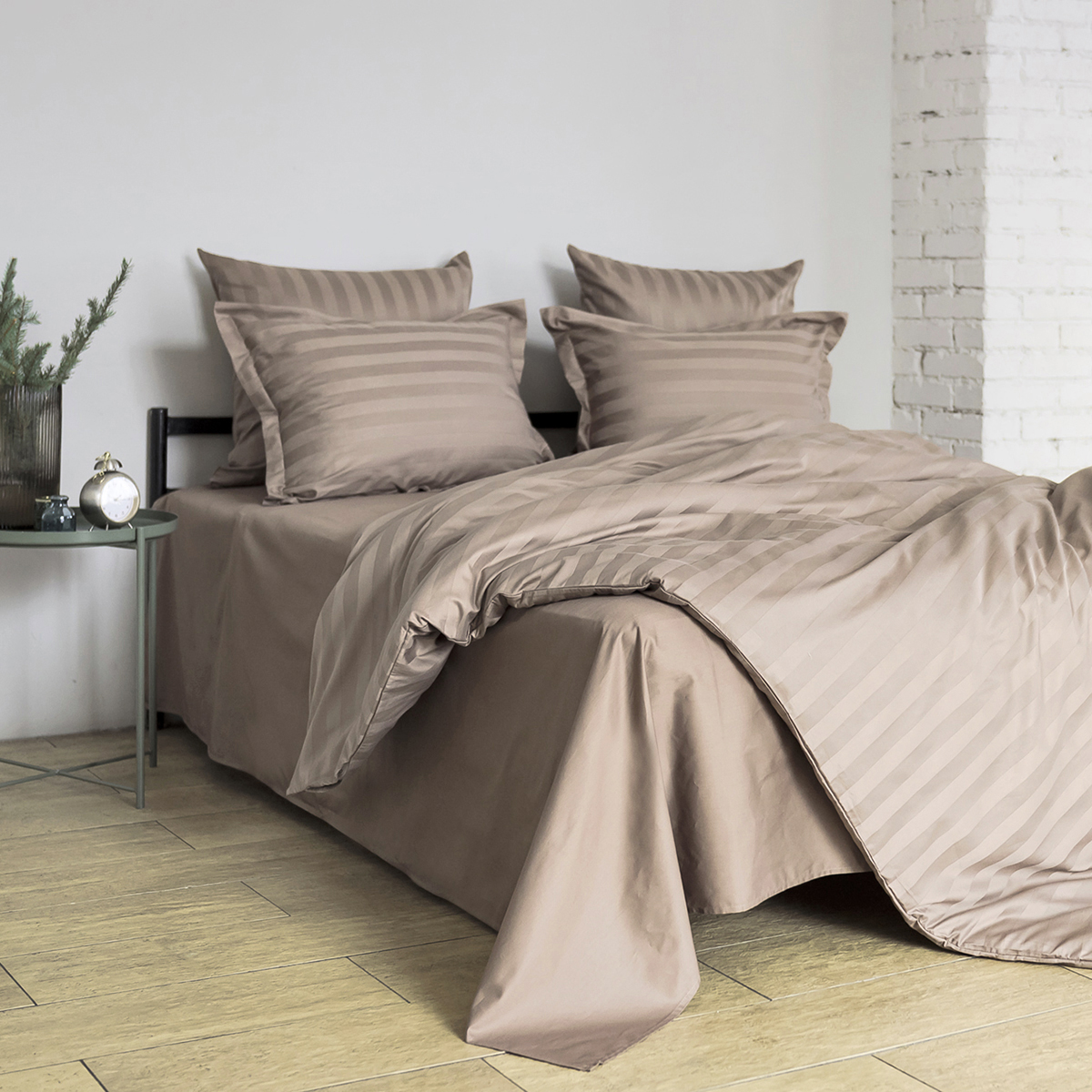 Однотонный стильный пододеяльник произведен из ткани страйп-сатин – 100% хлопок с жаккардовым рисунком в виде полос 3х3