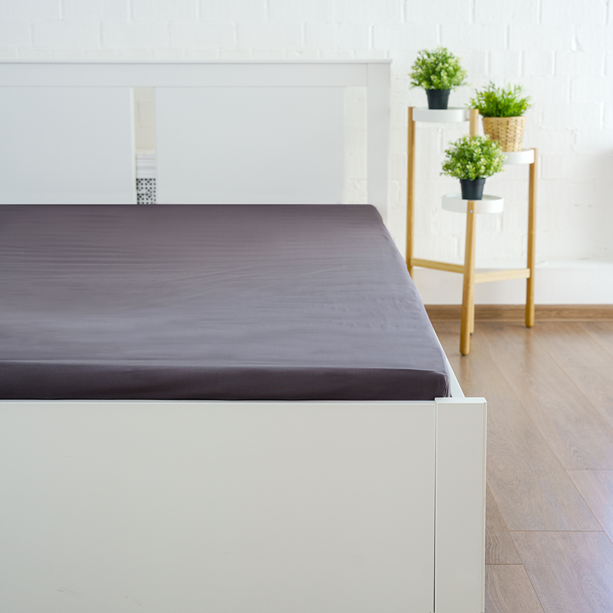 Простыня на резинке сатин Графитовый