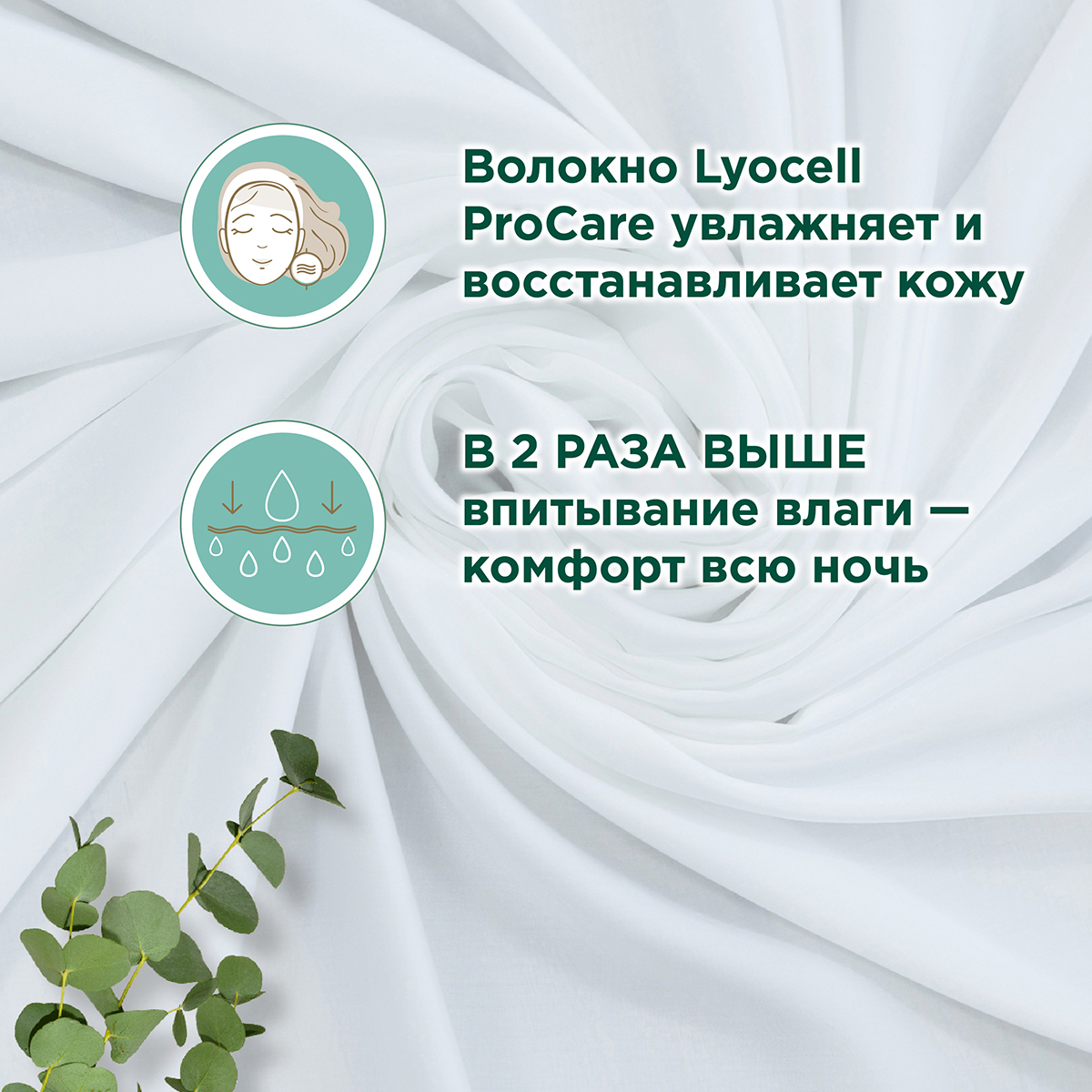 Уникальное волокно Lyocell ProCare обеспечивает восстановление водного баланса дермы. Отмечается увлажнение, смягчение и регенерация кожи. Кроме того, показатель впитывания влаги в 2 раза выше, чем у других тканей – гарантия комфорта на протяжении ночи.