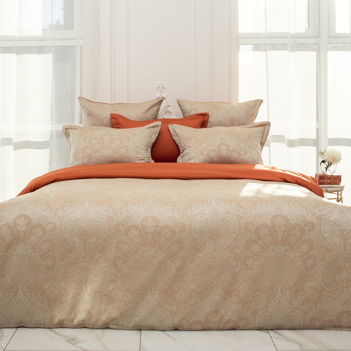 Внешне жаккардовое постельное белье выглядит очень дорого и изысканно. Благодаря тому, что нити в процессе производства перекручиваются, жаккардовая ткань очень плотная, прочная и устойчивая к деформированию, а рисунок и цвет не тускнеют в процессе эксплуатации.