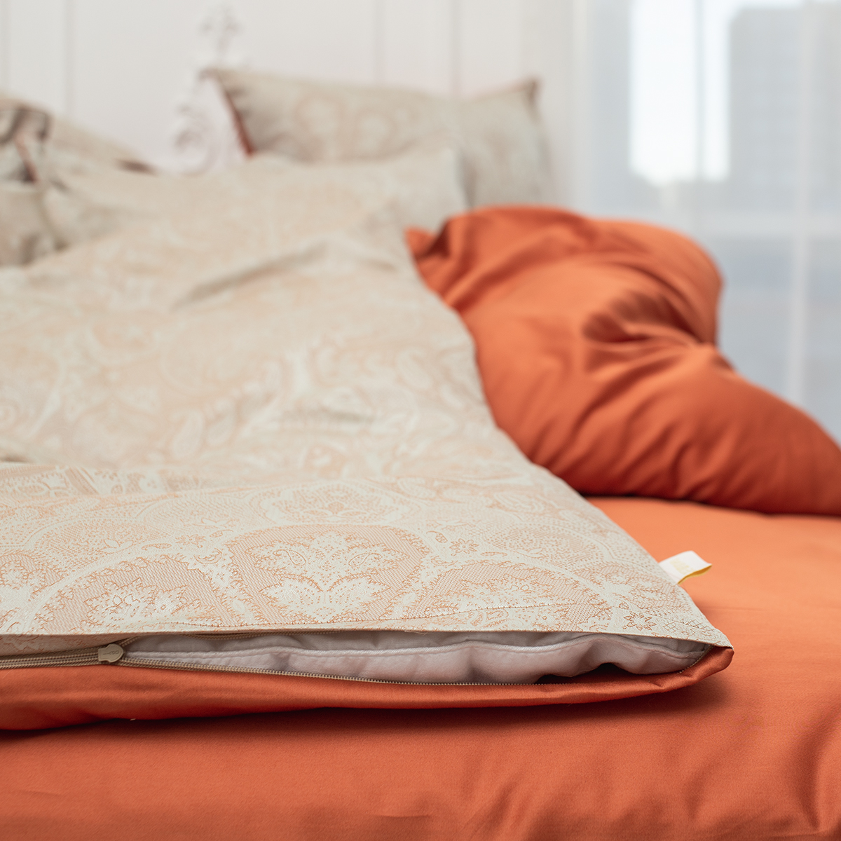 Комплекты постельного белья произведены из высококачественного и редкого хлопка сорта Pima. У этого сорта самые длинные, гибкие и мягкие волокна в мире, он в 2 раза легче и в 5 раз прочнее обычного хлопка. Хлопок Pima отличается ручным процессом добычи и обработки сырья, из которого производят уникальную ткань. Благодаря этому достигается особая чистота сырья и высокий уровень качества.