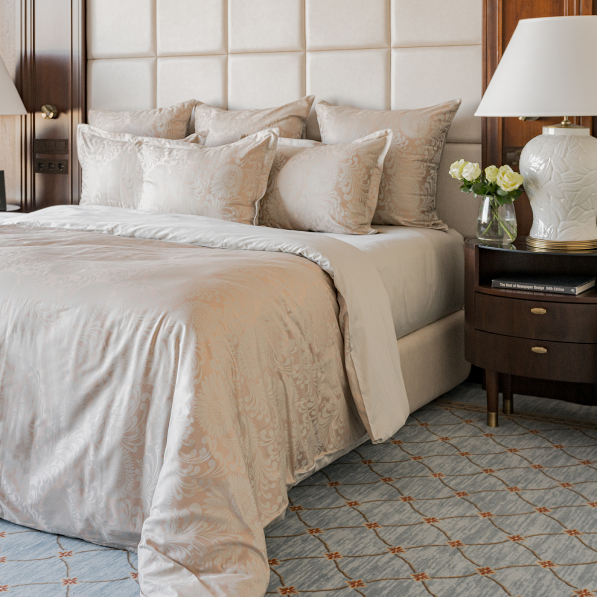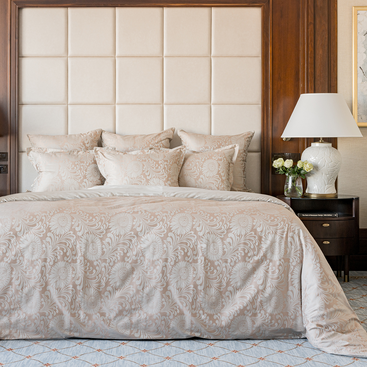 Внешне жаккардовое постельное белье выглядит очень дорого и изысканно. Благодаря тому, что нити в процессе производства перекручиваются, жаккардовая ткань очень плотная, прочная и устойчивая к деформированию, а рисунок и цвет не тускнеют в процессе эксплуатации.