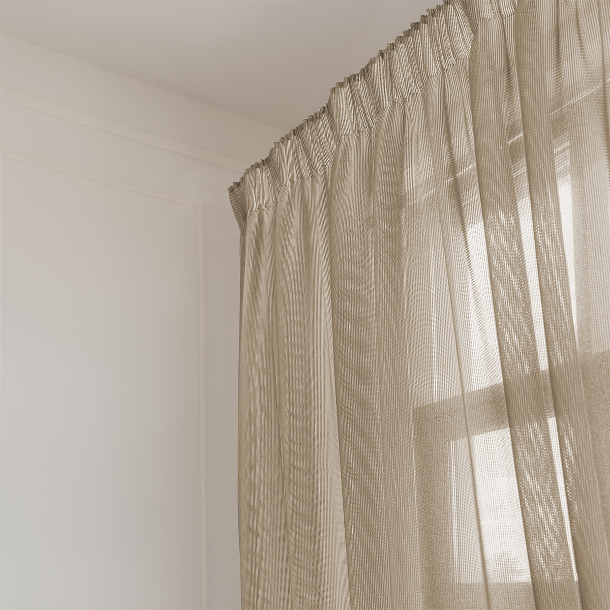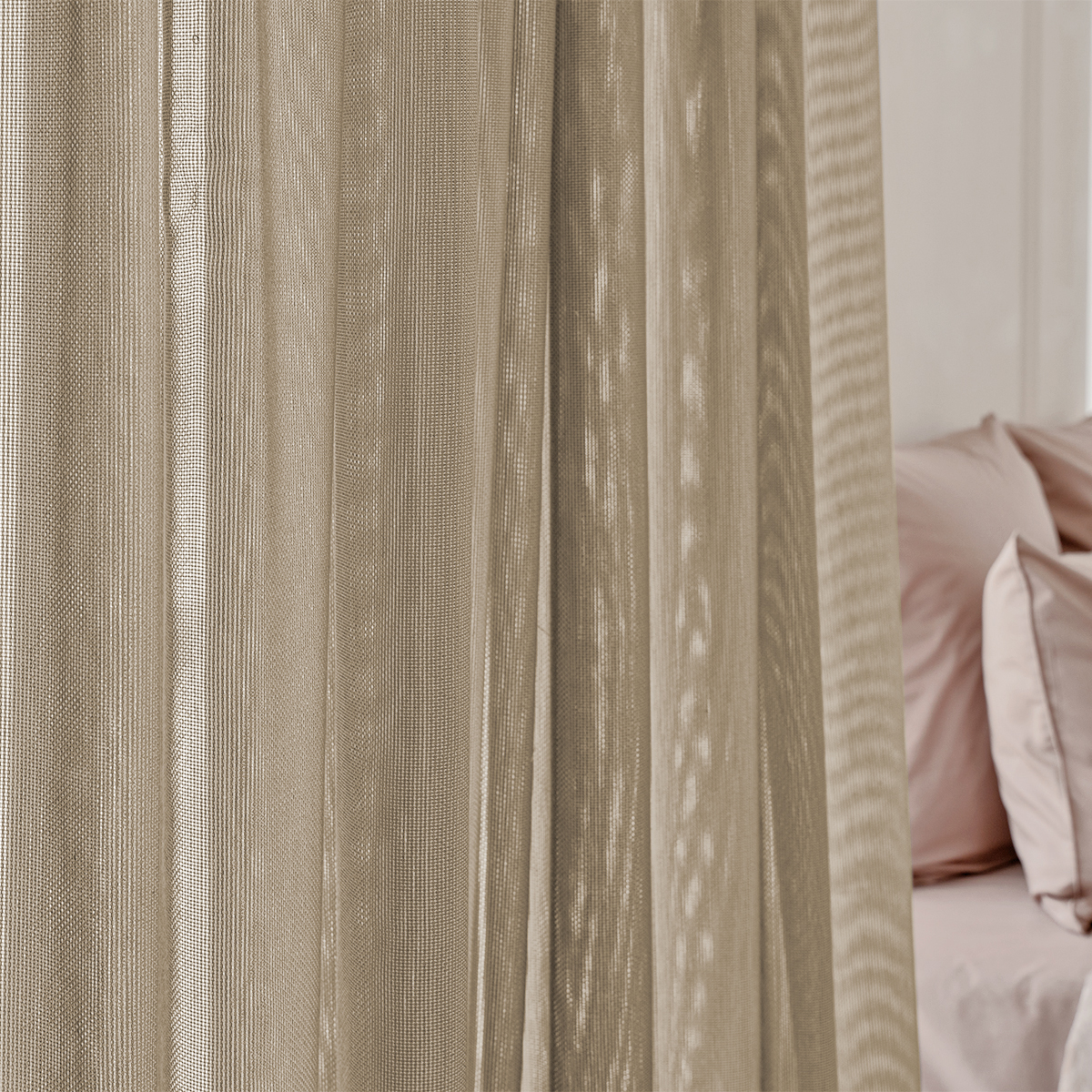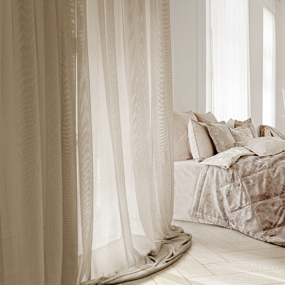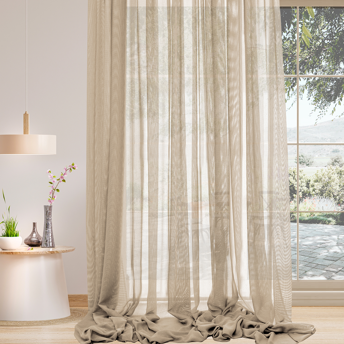 Легкая невесомая и в тоже время особо прочная, износостойкая ткань соткана в виде сетки. Натуральная фактура очень мягкая, приятная на ощупь. Прекрасно драпируется, может использоваться как самостоятельный декор окна.